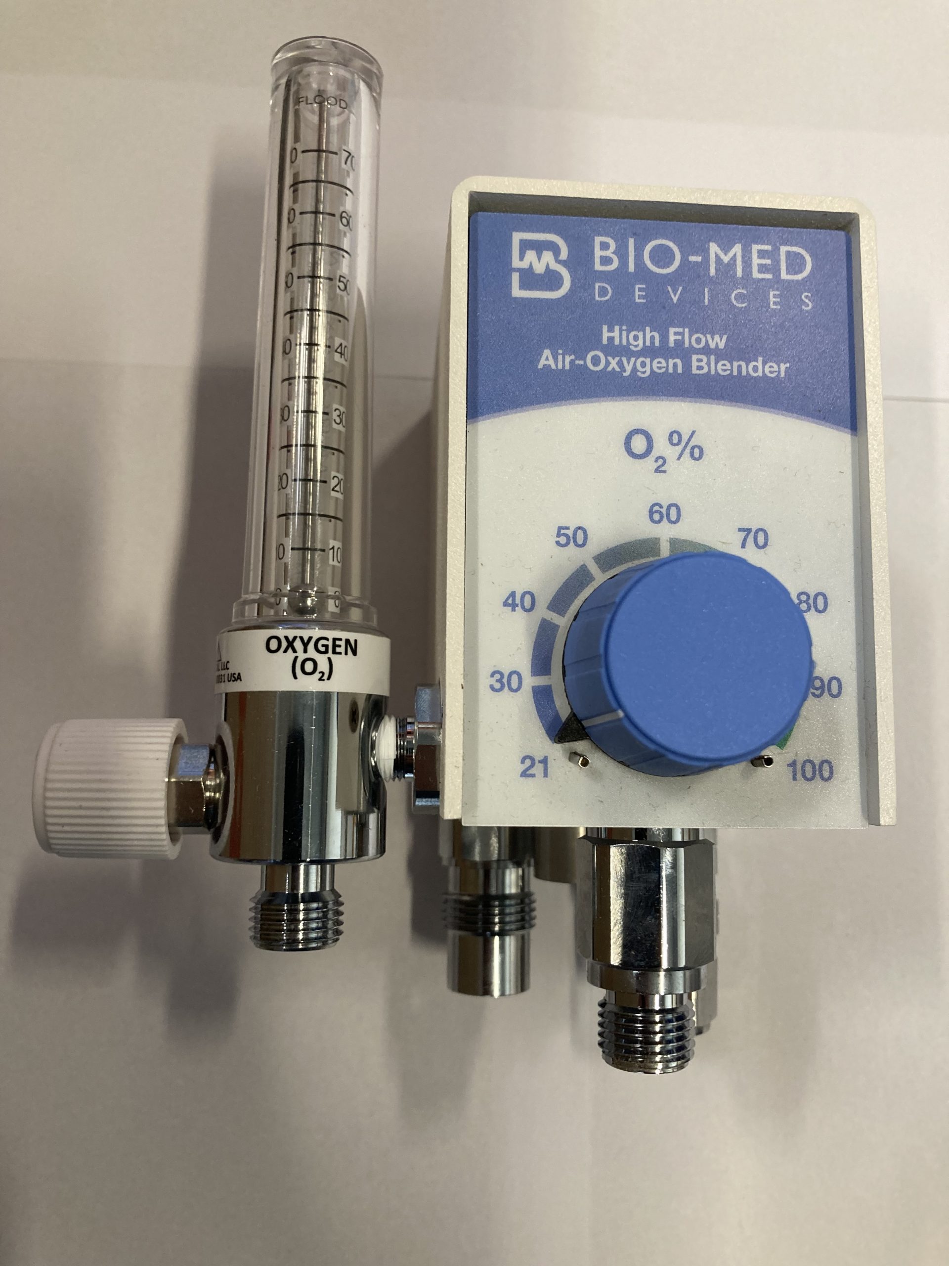 BIO-MED high flow mixer m. 0-70 ltr. I venstre side, komplet med klo, slanger, in-line regulator og stiknipler