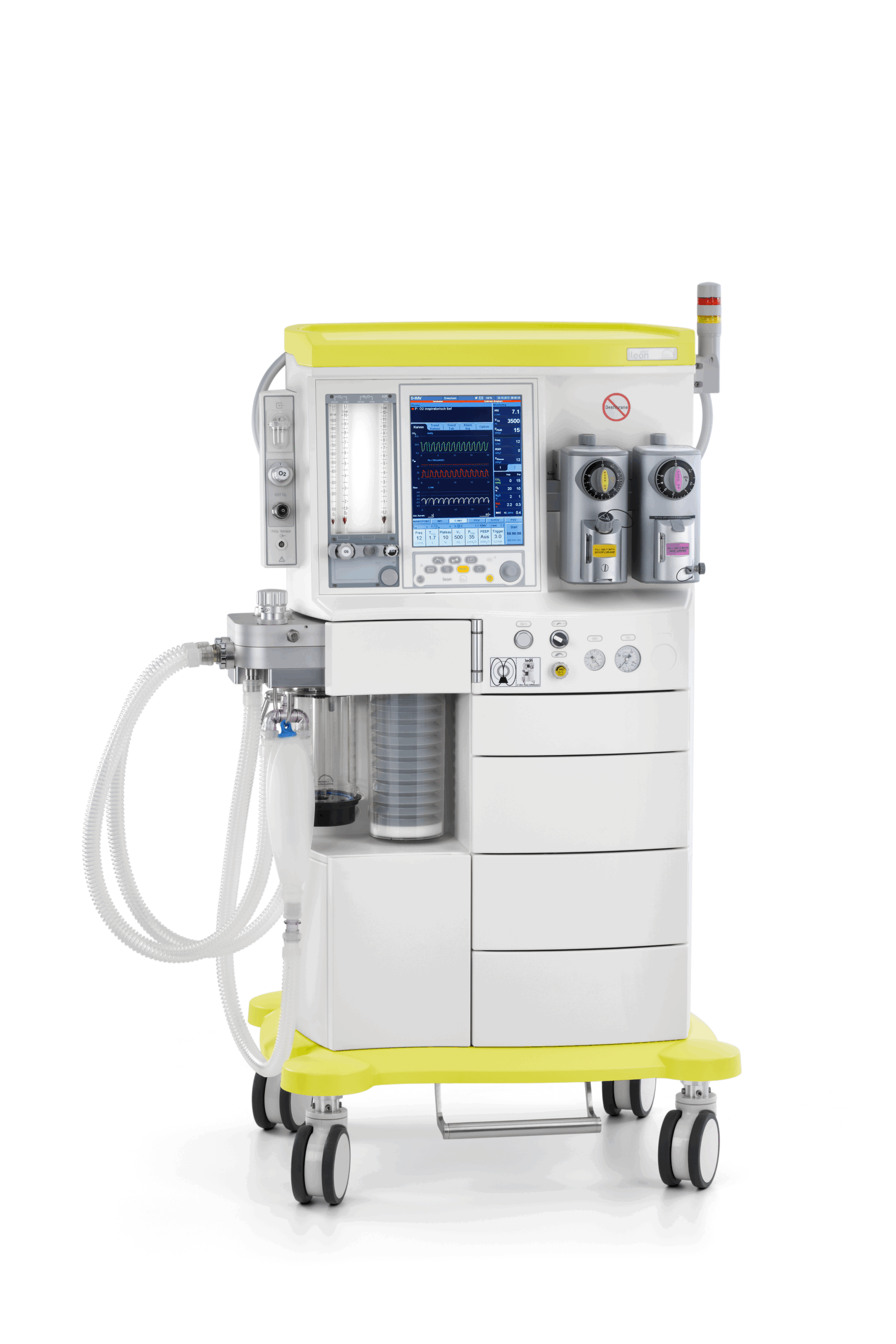 Den eneste enhed i sin klasse, der kan udstyres med en integreret CO2- og anæstesigasmåler. Som ekstraudstyr kan Leon MR forbindes med en