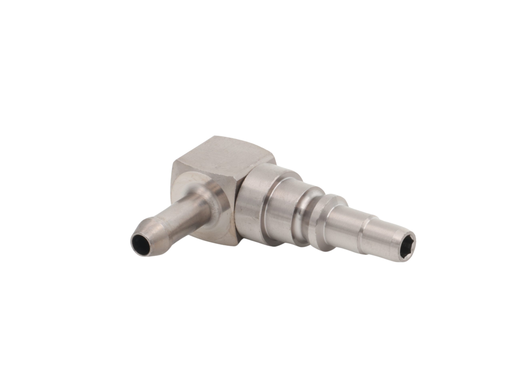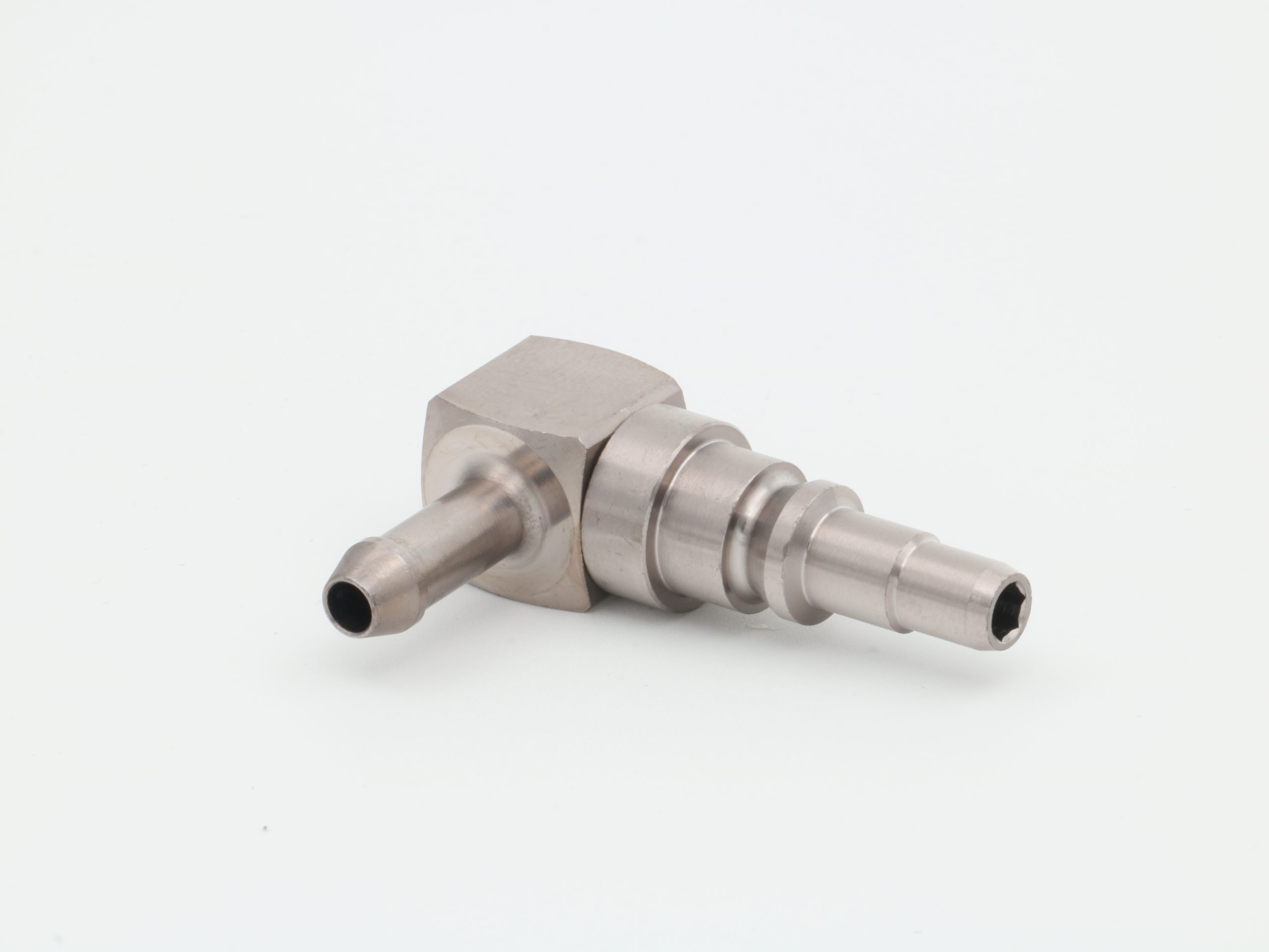 N2O Stiknippel, mini, m/kontraventil, Vinkel, med slangestuds Ø6