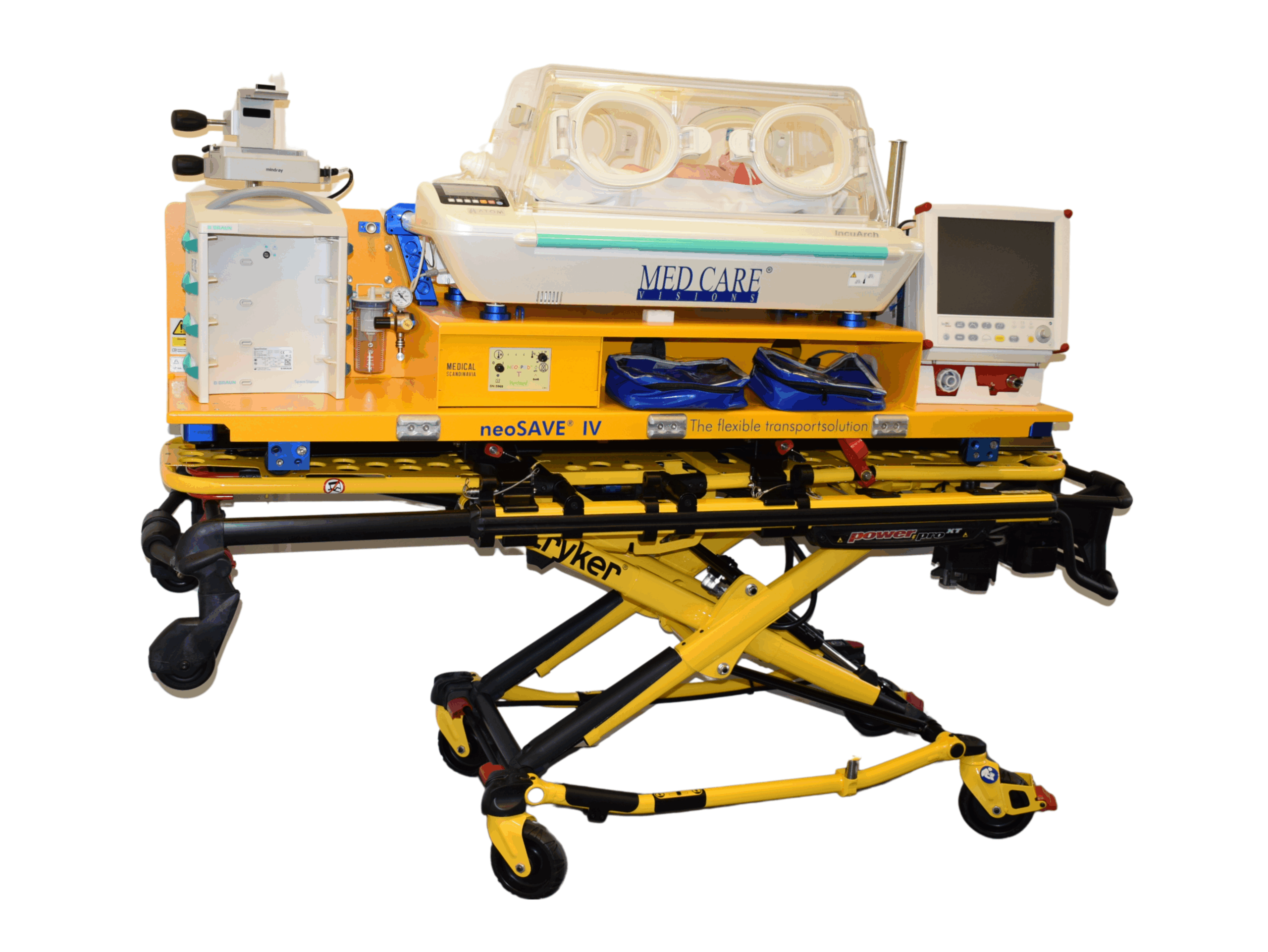 NeoSAVE er et komplet neonatalt transportsystem. Det eneste på markedet, der er CE-godkendt, også med HFO ventilations-behandling. Indbygget fugter til respirator.