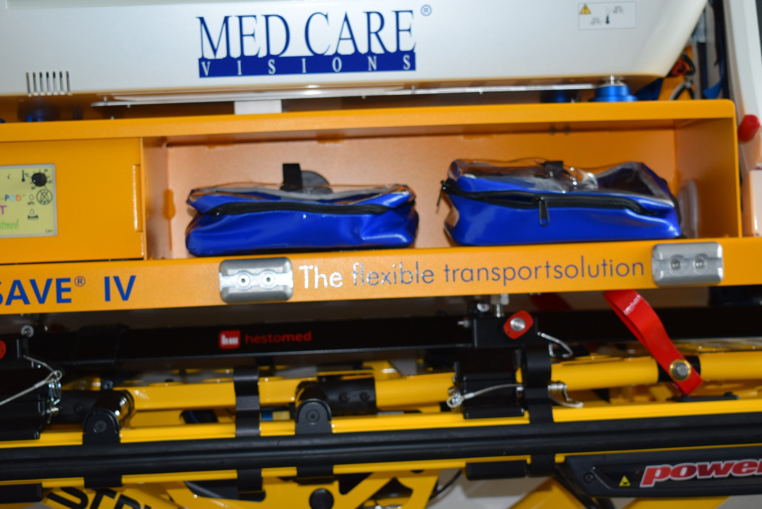 Kan leveres med Leoni Plus Transport ventilator med HFO. Crash testet og godkendt til brug i Fixed Wing, Helicopter og Ambulance.