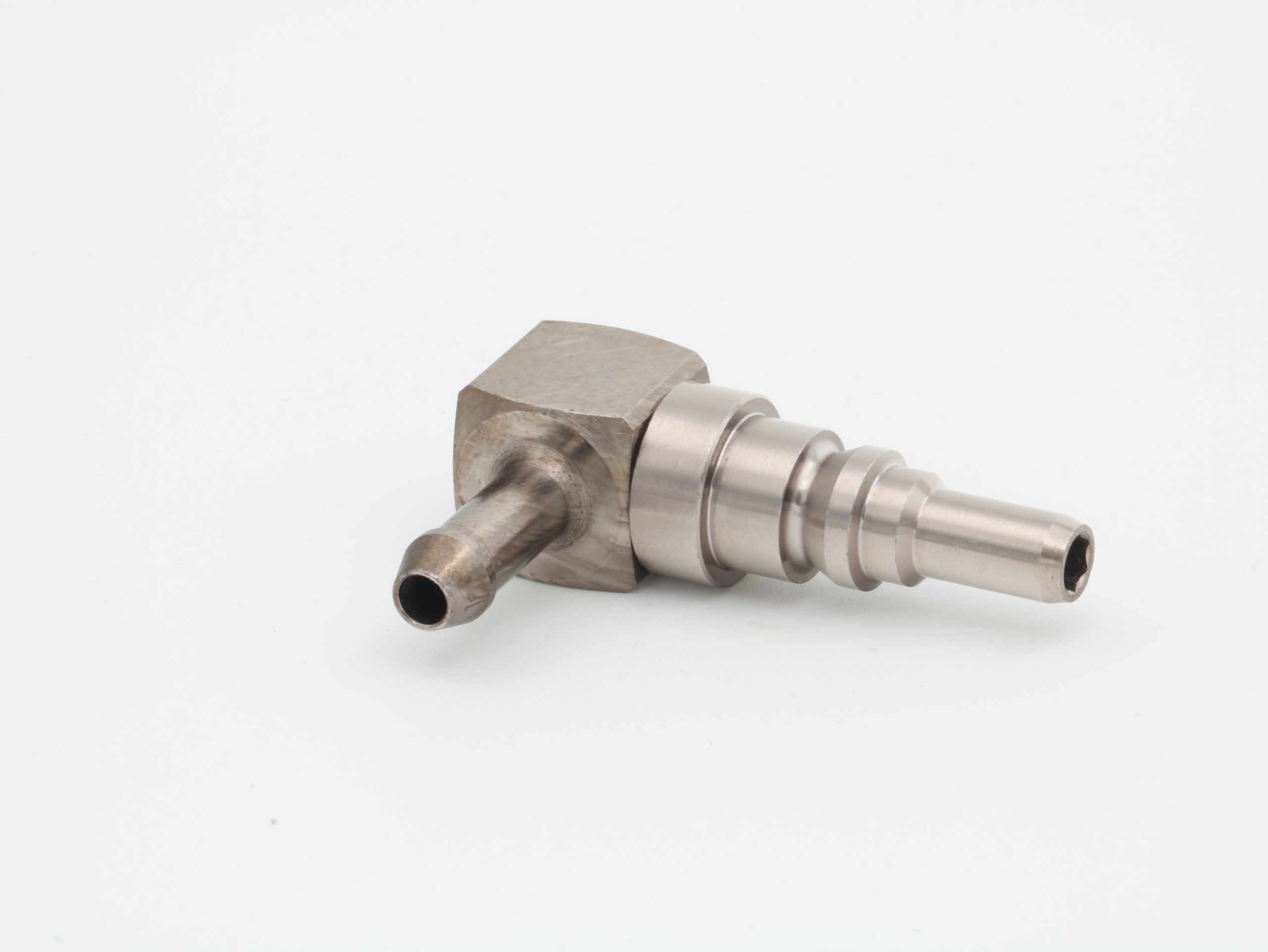 O2 Mini vinkelstiknippel med kontraventil og slangestuds – standard mini