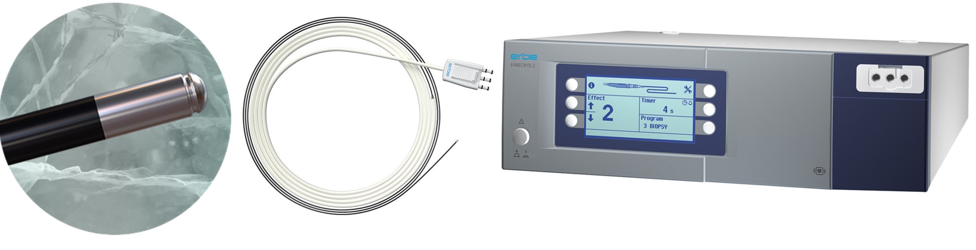 Anbefalet udstyr: ERBECRYO®2 med Erbe fleksible cryoprober til engangsbrug, diatermiapparat VIO®3, APC®3 argon plasma modul med FIAPC® filterintegrerede argonsonder